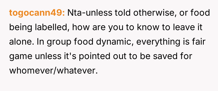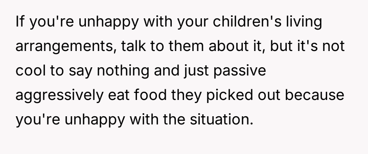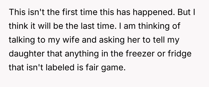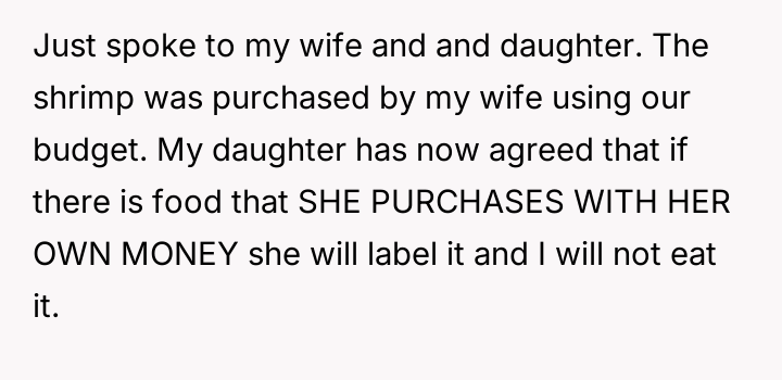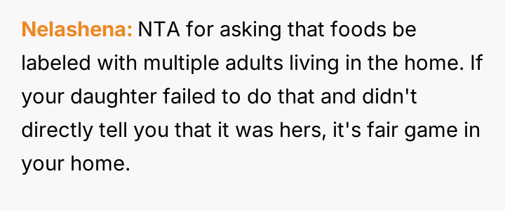 The original poster (OP) felt unjustly attacked and berated by his adult daughter for consuming food he believed was communal or available, given that he financially supports the entire household.