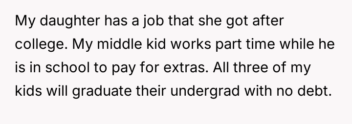 Despite working odd hours and carrying the weight of bills and mortgage payments alone, he finds solace in knowing his children are secure, debt-free, and climbing their own paths toward independence.