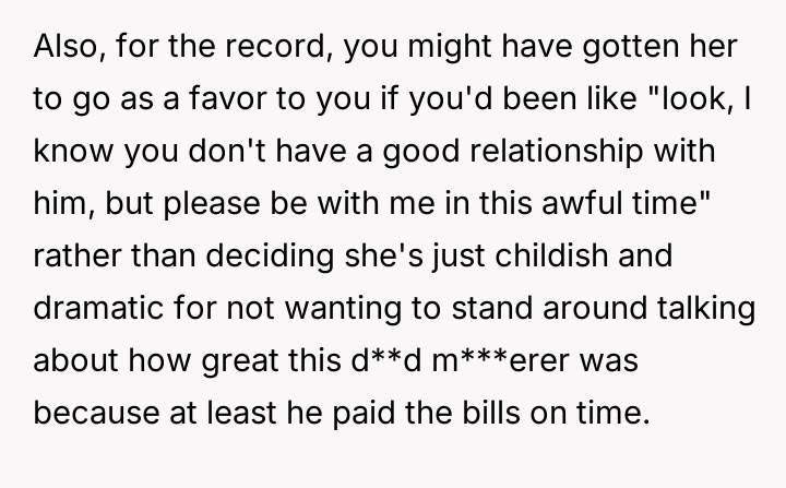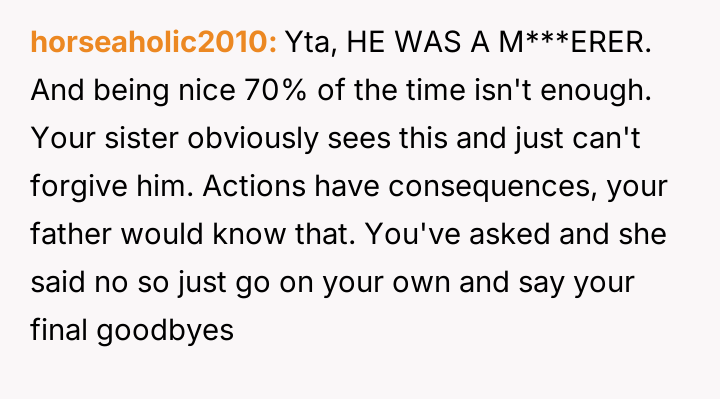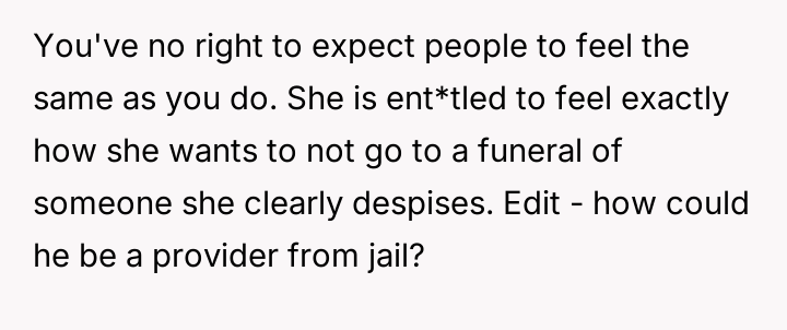 AITA For being angry at my sister for not attending our fathers funeral because of his criminal history.