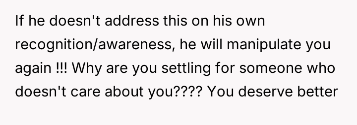 In the silence between them, the real problem lingered: a relationship strained by one person’s refusal to grow.