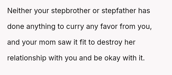 The original poster (OP) is experiencing significant emotional distress due to years of being marginalized and having her needs consistently overridden to favor her stepbrother.