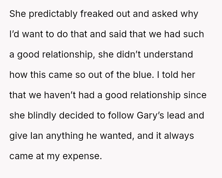 She once shared a close bond with her mother, a connection that slowly unraveled the moment her mother married Gary.