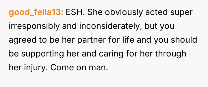 AITA for not caring about my wife's injury.