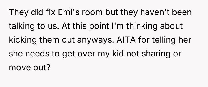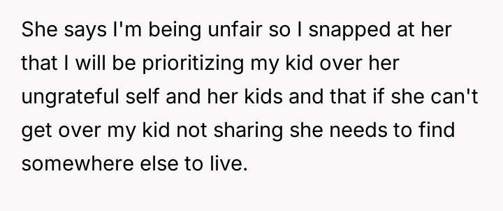 AITA for telling my sister that if she’s so upset about my kid not sharing her toys they could find another place to live