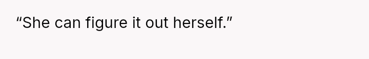 Her actions stem from a deeply held belief that he must face the natural consequences of his choices, a position that directly conflicts with the stepson's desire for immediate escape and the pa*sive approach of his father.