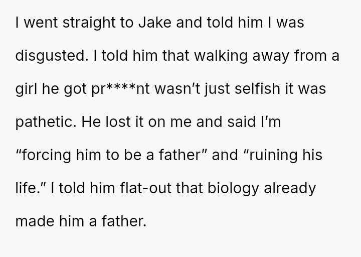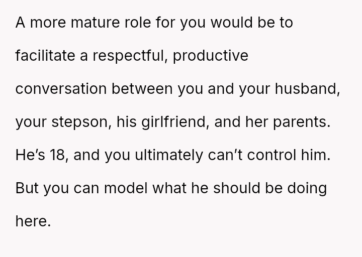 Was the OP justified in confronting her stepson so forcefully about his responsibility to the pr****nt teenager, even if it meant alienating him and stepping outside the traditional role of a stepparent, or did her intense intervention overstep necessary boundaries, making her the antagonist in his narrative?