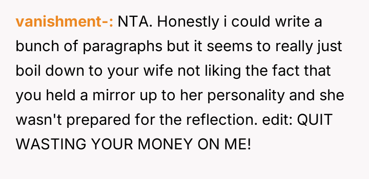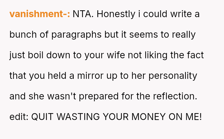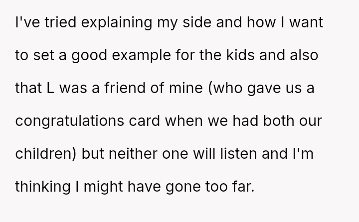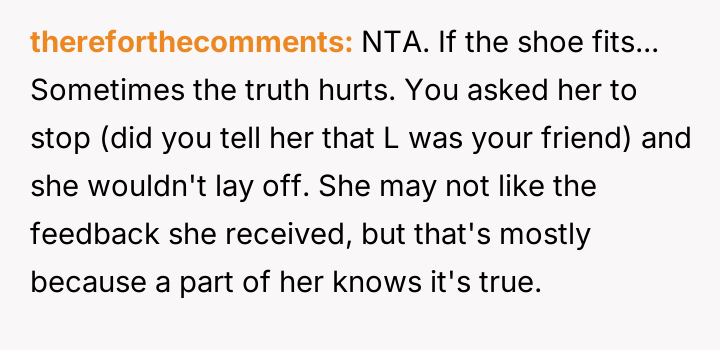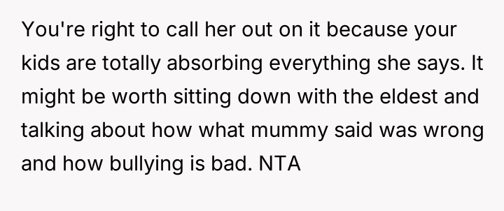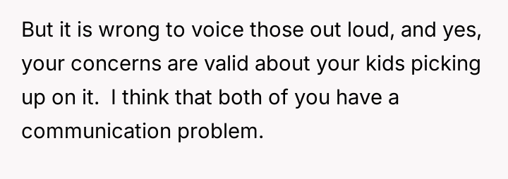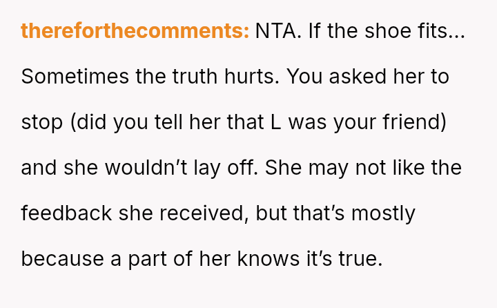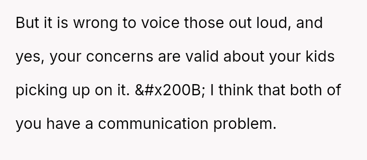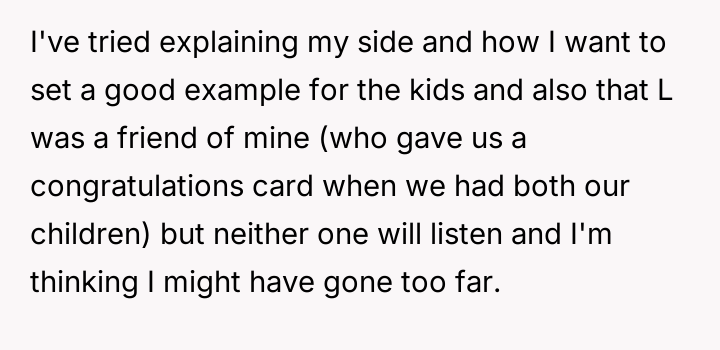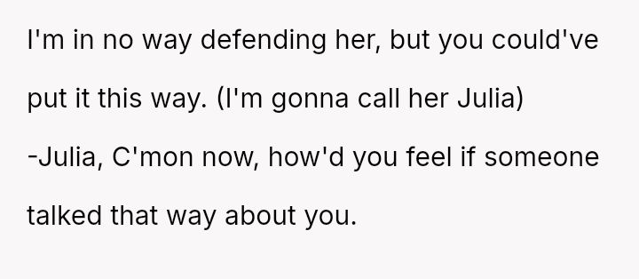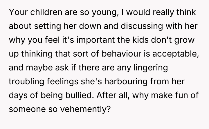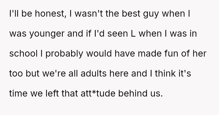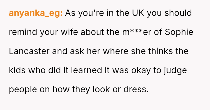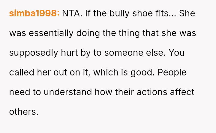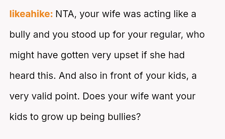 Was the husband justified in using the painful memory of his wife's bullying history against her to stop an inappropriate public judgment, or did invoking her trauma cross a necessary boundary in their relationship?