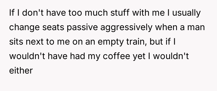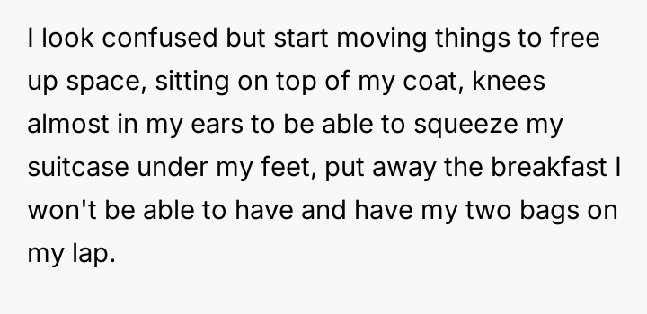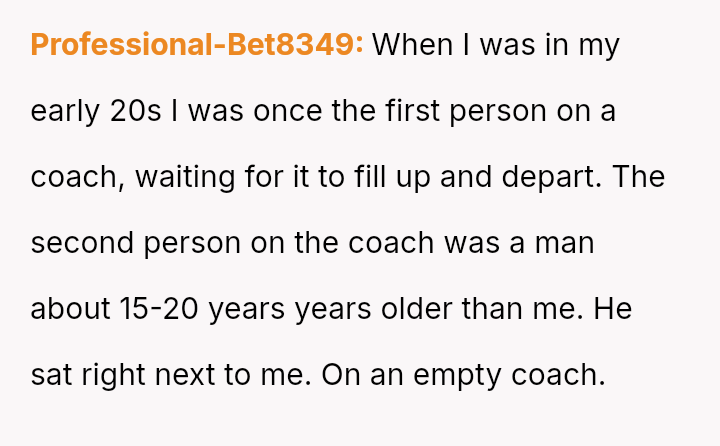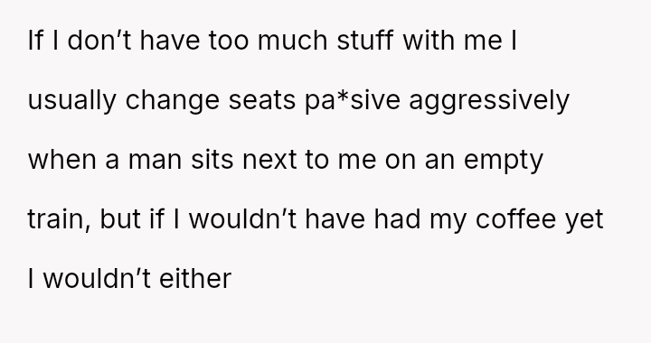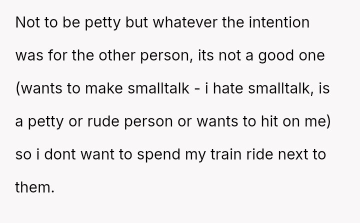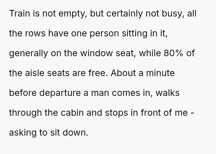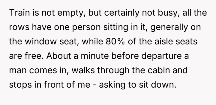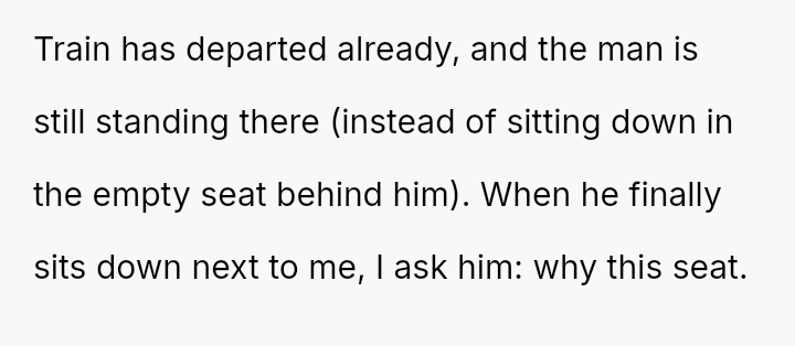 As the train pulled away from the station, the man’s presence beside her was more than just a shared seat; it was an unspoken intrusion into her carefully contained space.