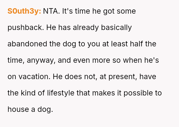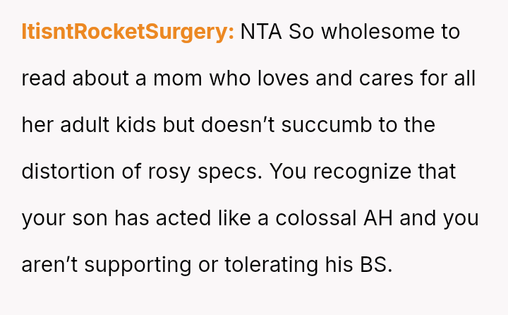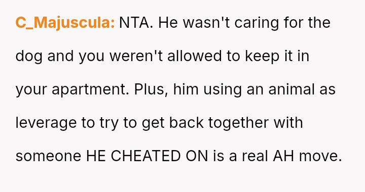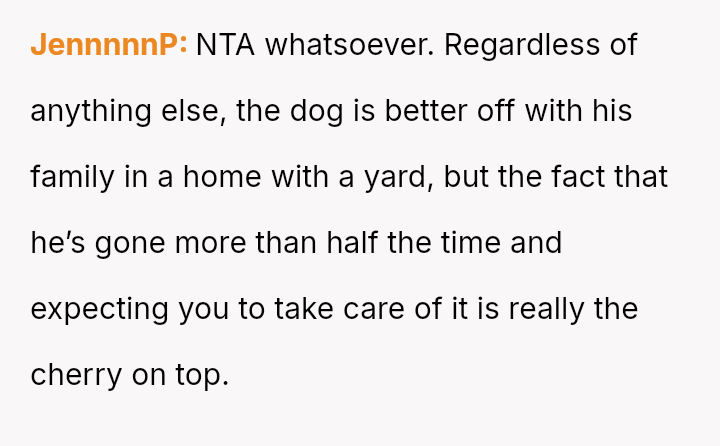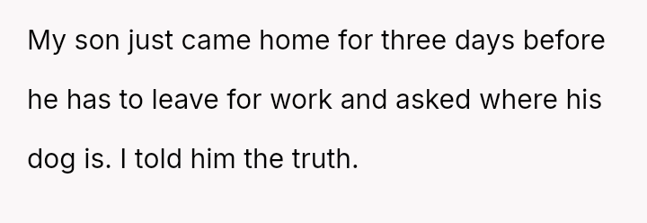 Her central conflict arises from supporting her son's need for temporary housing while simultaneously enforcing limits on his irresponsible behavior, which ultimately led her to rehome his pet, prioritizing her own peace and the dog's welfare over her son's immediate demands.