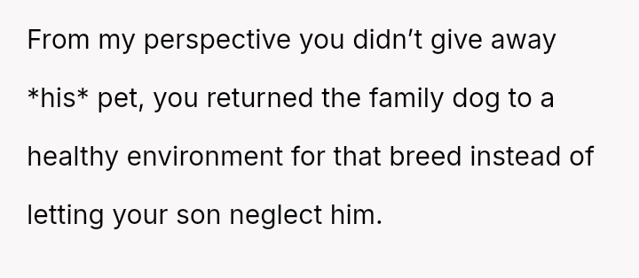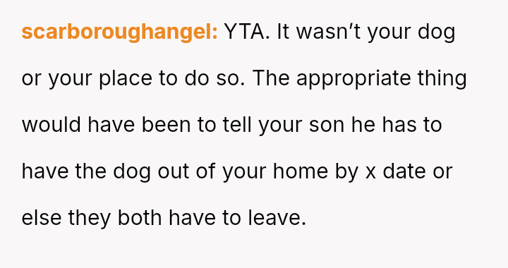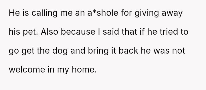 Was the OP justified in giving away her son's dog, knowing it would cause conflict, or did her action overstep parental boundaries by disposing of his property?