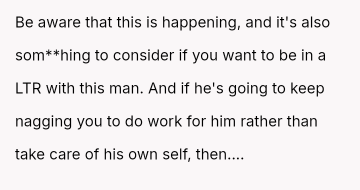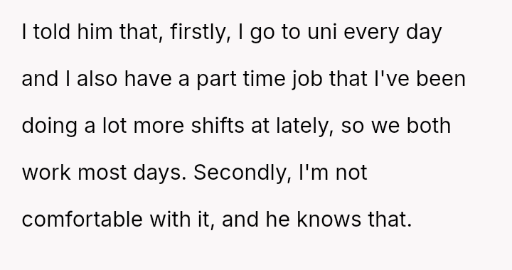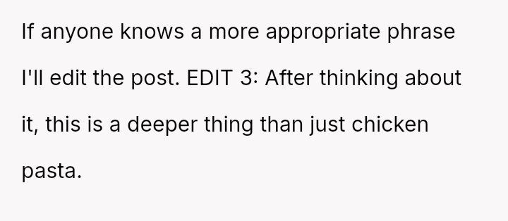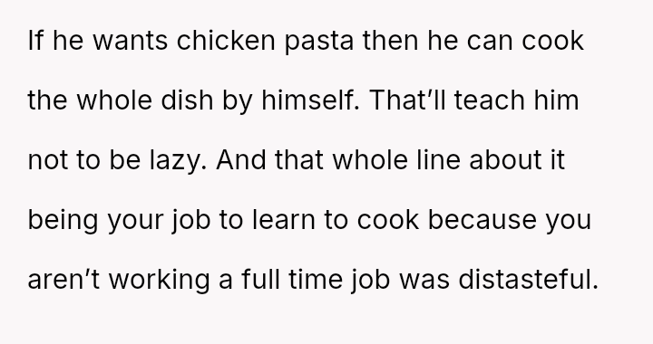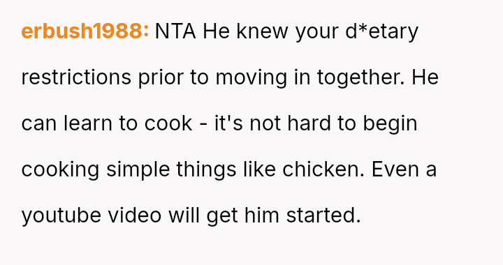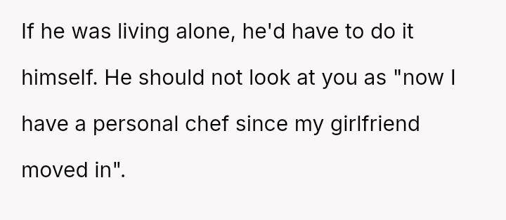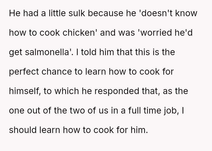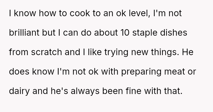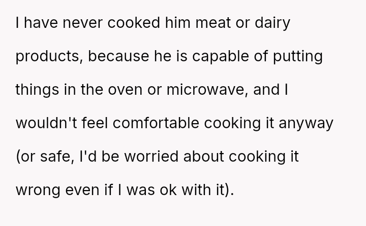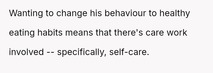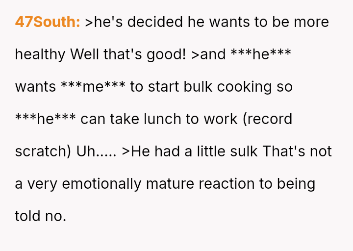 He wanted to change, to eat healthier, and looked to her for support in ways that challenged her principles and sense of safety. What started as a simple request for bulk cooking to improve his lunches stirred a quiet storm of discomfort and tension.