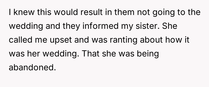 AITA for telling my sister she is an idiot if she thought her actions at her wedding wouldn’t have consequences.