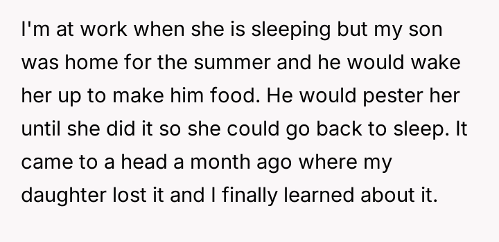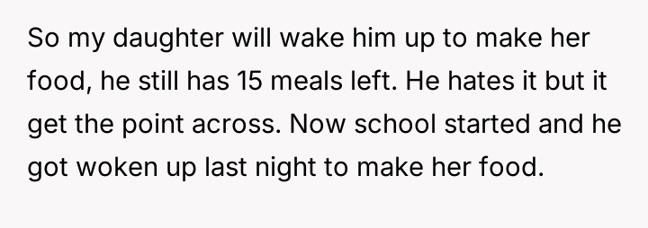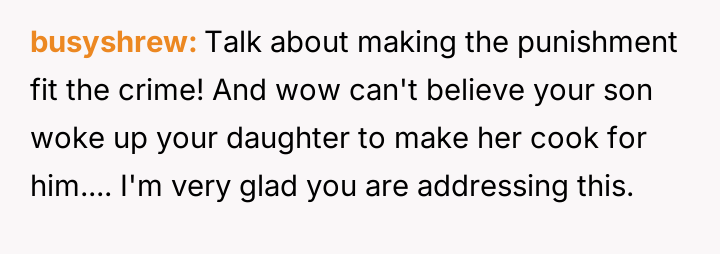 AITA for making my son cook for his sister even if it means cooking at midnight and waking him up.