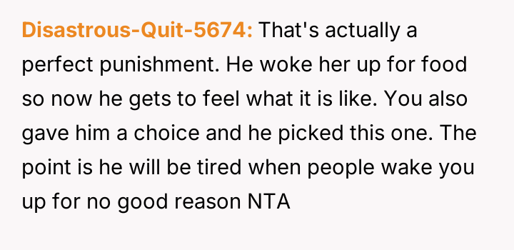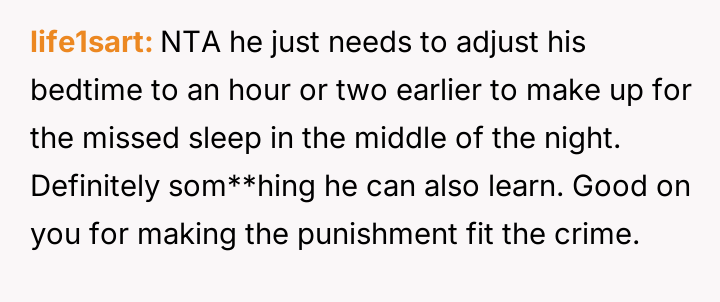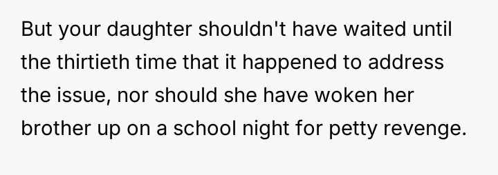 The original poster (OP) implemented a strict, reciprocal punishment to address the son's continuous disruption of his sister's sleep schedule, leading to family conflict.
