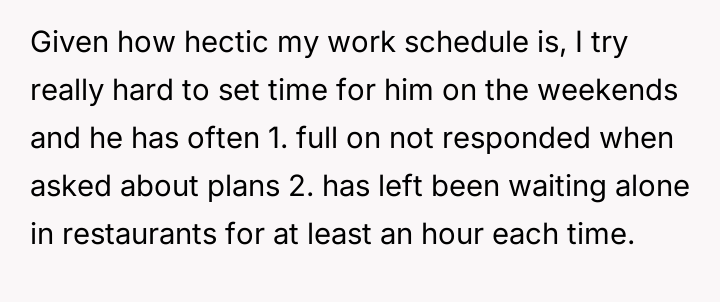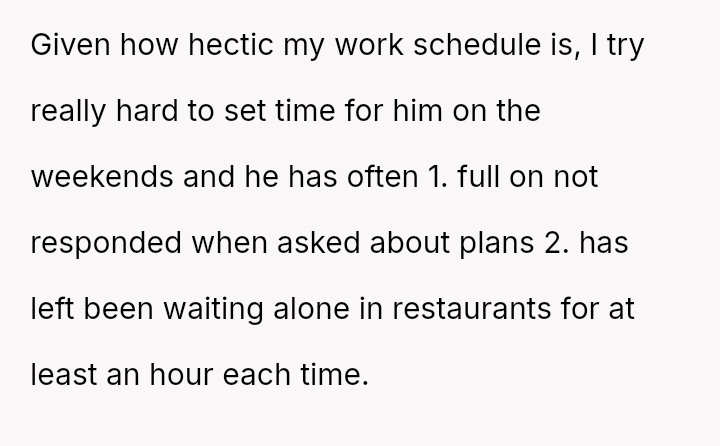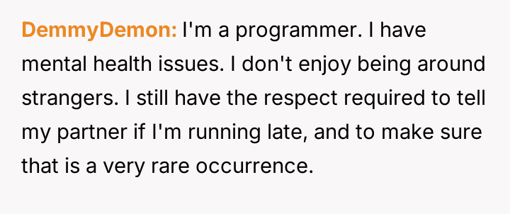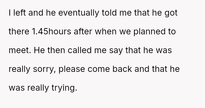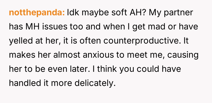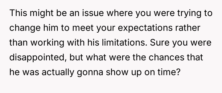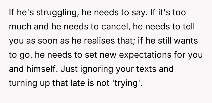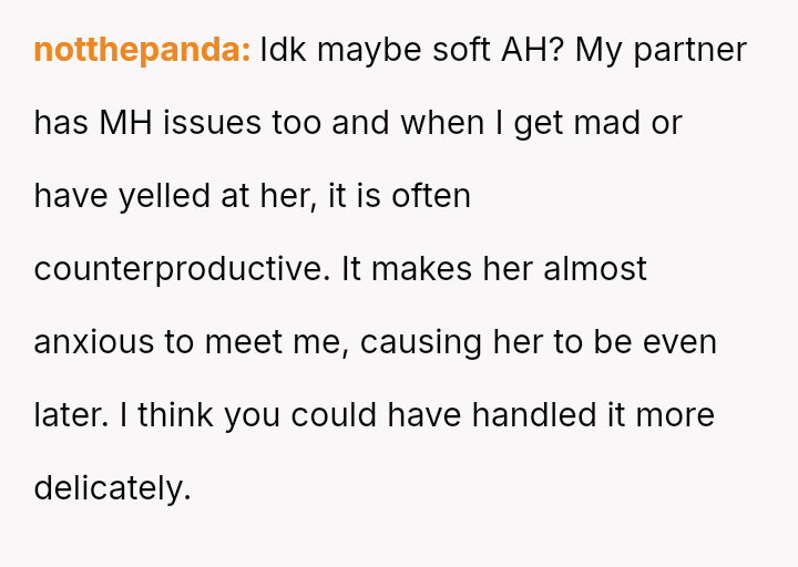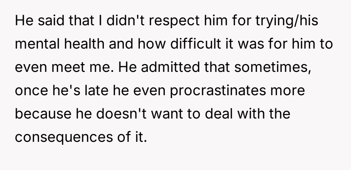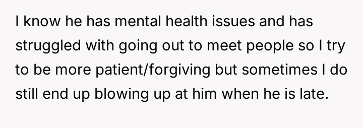 The core question is whether the OP is justified in demanding punctuality and timely communication about delays, or if the partner's efforts to manage his mental health and social anxiety necessitate a greater degree of flexibility and forgiveness from the OP regarding scheduling mishaps.