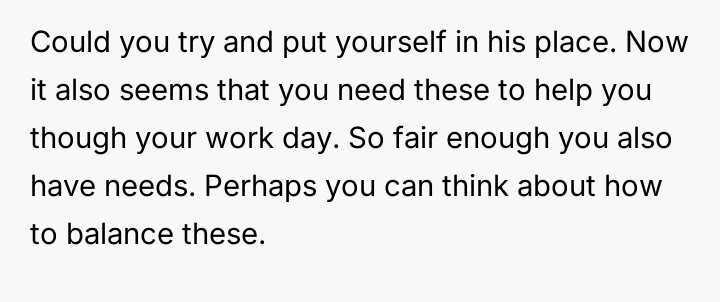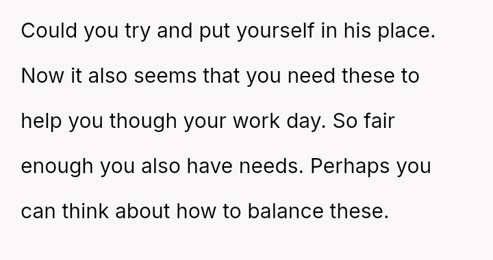 Is consideration for extreme emotional pain more important than maintaining personal habits in a shared space?