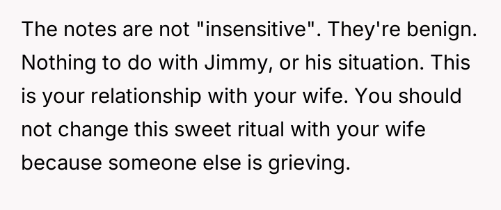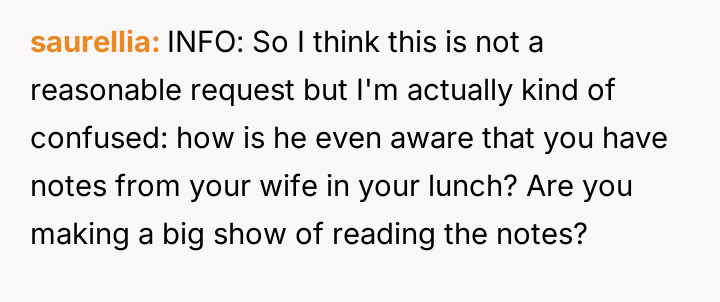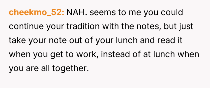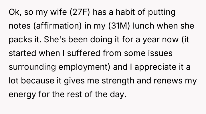 AITA for refusing to tell my wife to stop putting notes in my lunch?