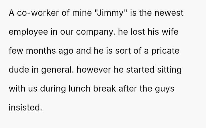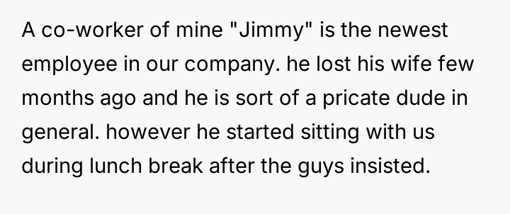 Among co-workers who teased with lighthearted banter, a new presence quietly observed — Jimmy, a man recently shattered by loss and still navigating the shadows of grief.