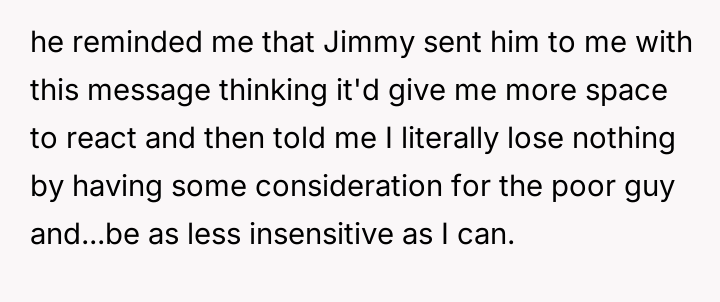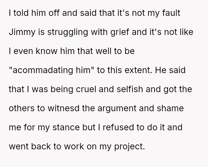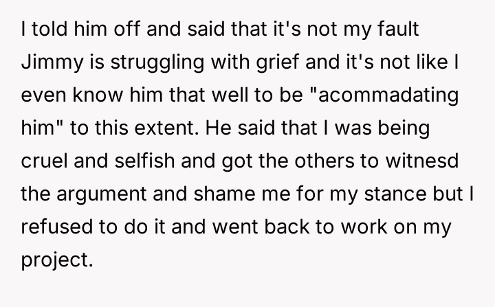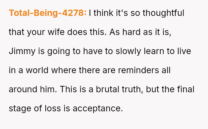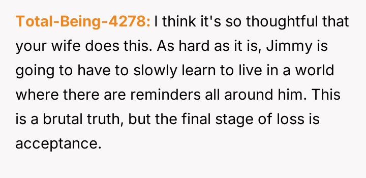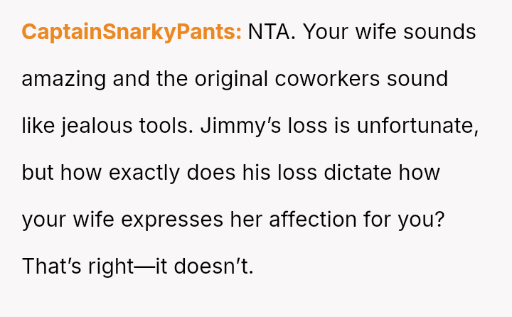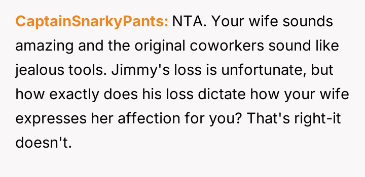 The central conflict arises because his coworkers, particularly a grieving colleague named Jimmy, perceive these open displays of affection as painful reminders of loss, pressuring the OP to cease this personal habit for the sake of others' comfort.