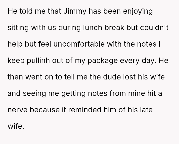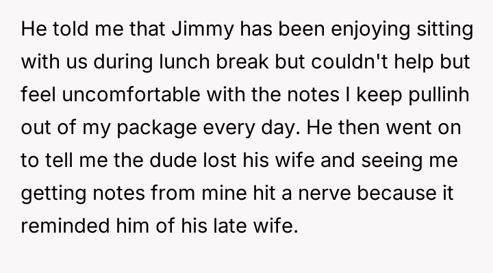 As he joined the lunch table, these notes, once a private comfort, began to carry a deeper meaning, bridging silent pain with gentle understanding.