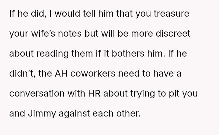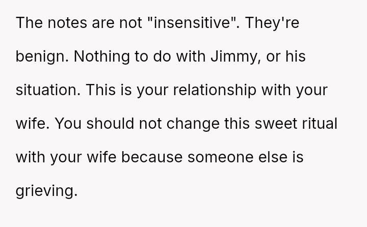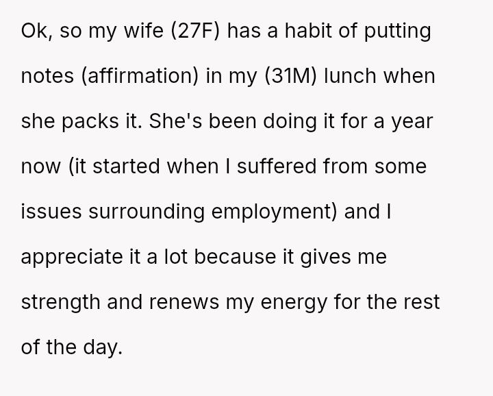 The original poster (OP) feels strongly attached to the daily affirmation notes from his wife, viewing them as a source of necessary strength and connection.