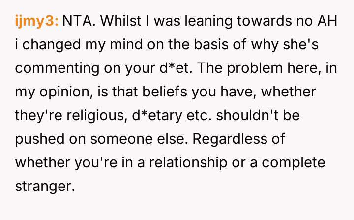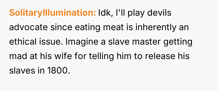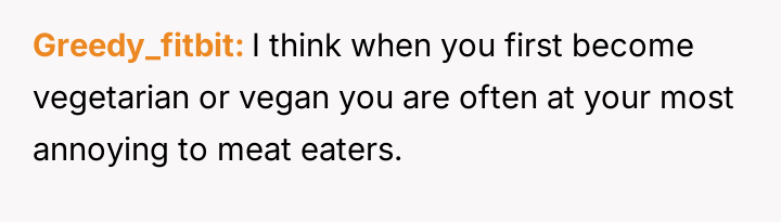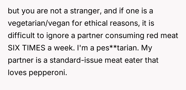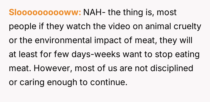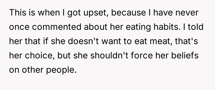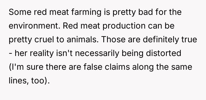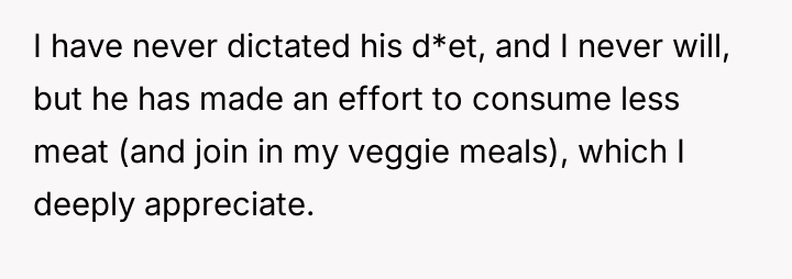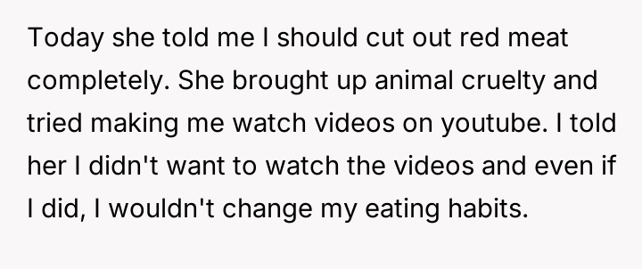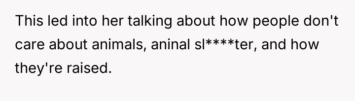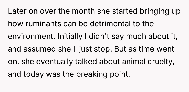 What started as casual curiosity soon morphed into quiet tension, as her concern over his meat consumption turned into passionate pleas about health, the environment, and animal cruelty.