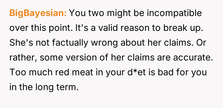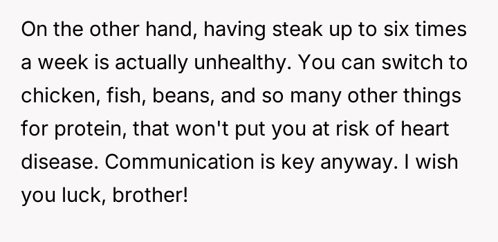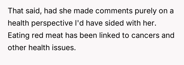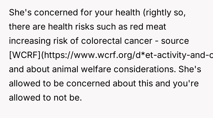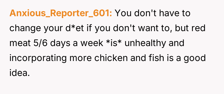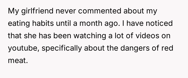 AITA for telling my girlfriend to stop commenting on my eating habits, after she told me to cut out red meat?