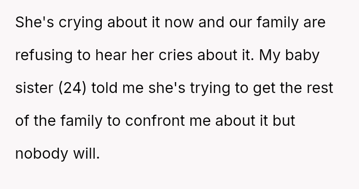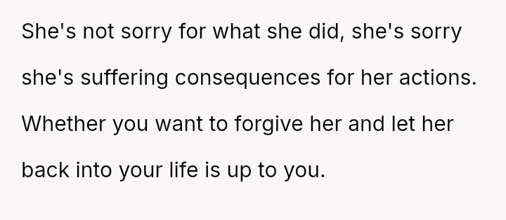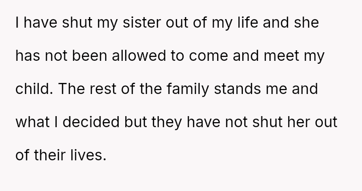 The OP has taken a firm boundary by cu***ng off contact, which she feels is necessary for her own well-being, even though her sister is now deeply hurt and seeking reconciliation.