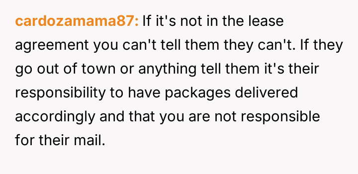 AITA if I tell my tenants they can't have packages delivered to the house?