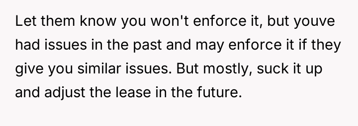 The debate centers on whether the tenant's behavior const*tutes a lease v***ation or merely poor etiquette within a shared living arrangement.