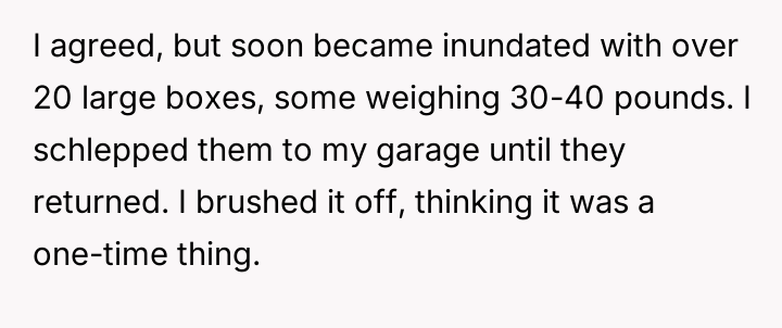 What started as a simple rental arrangement slowly spirals into a silent battle over space and trust, as an overwhelming flood of deliveries threatens the peace of a shared mailbox and the sanctuary of home.