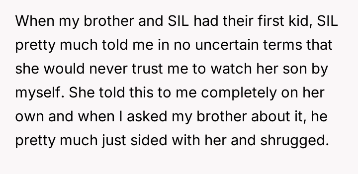 AITA For refusing to babysit for my brother and SIL after they previously told me they don't trust me