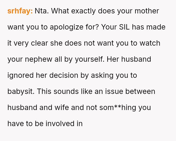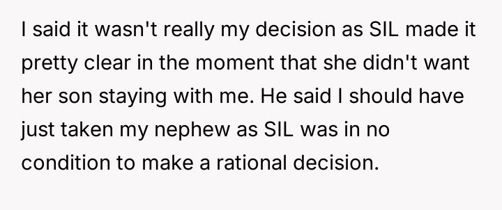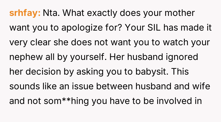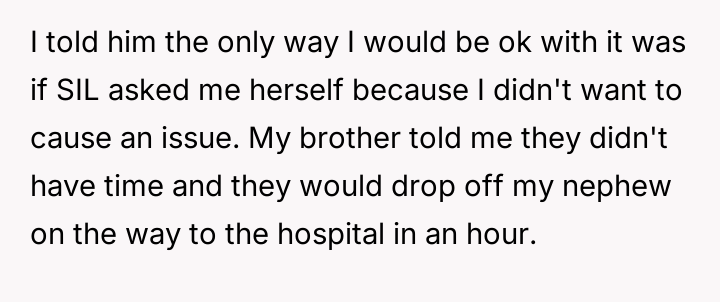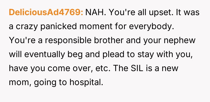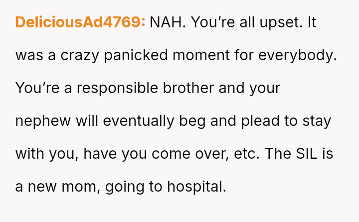 Was the OP an antagonist for refusing to watch his nephew when the primary caregiver explicitly rejected the arrangement in that moment, or did he correctly uphold es**blished relational boundaries? Should immediate familial need override prior stated comfort levels in a genuine emergency?