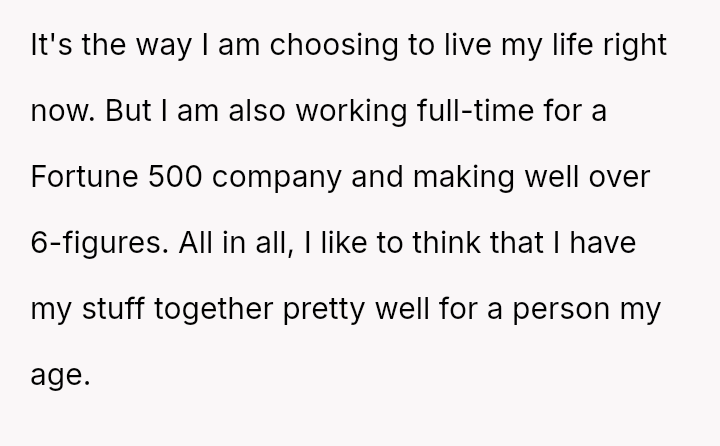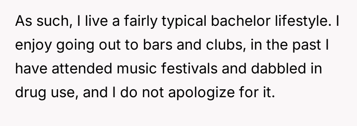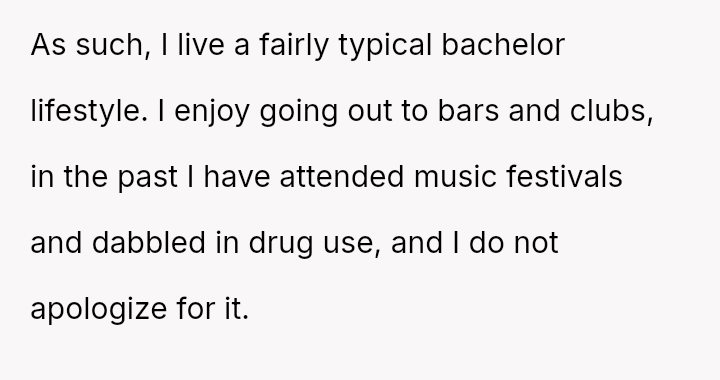 He lives a life unapologetically his own—embracing nights out, music festivals, and a bachelor’s freedom while thriving in a high-powered corporate career.