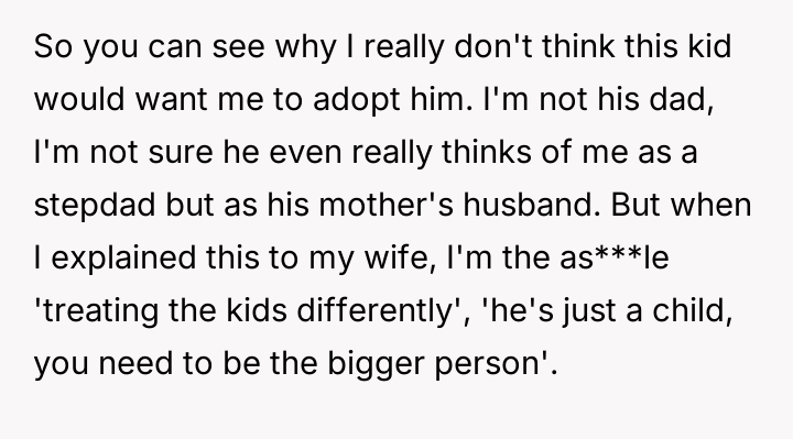 AITA for not wanting to adopt one of my wife's children?
