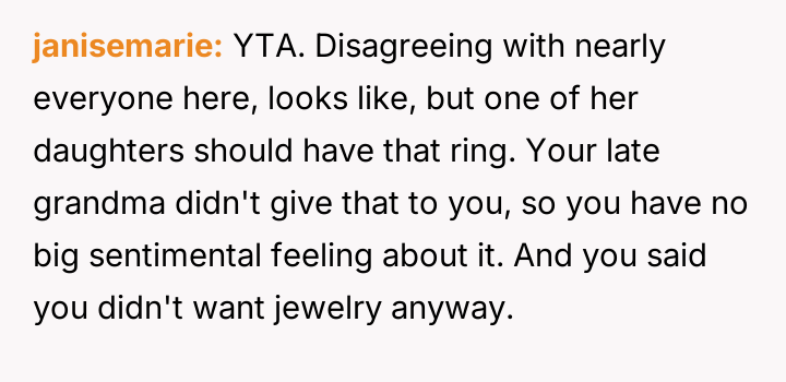 AITA for keeping my grandmothers ring when it was given to me by “mistake”?