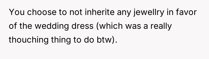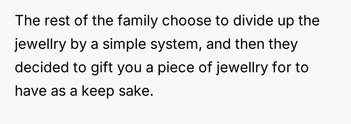 In the absence of written wishes, the family’s peaceful sharing of the jewelry became a testament to their connection and respect for one another.