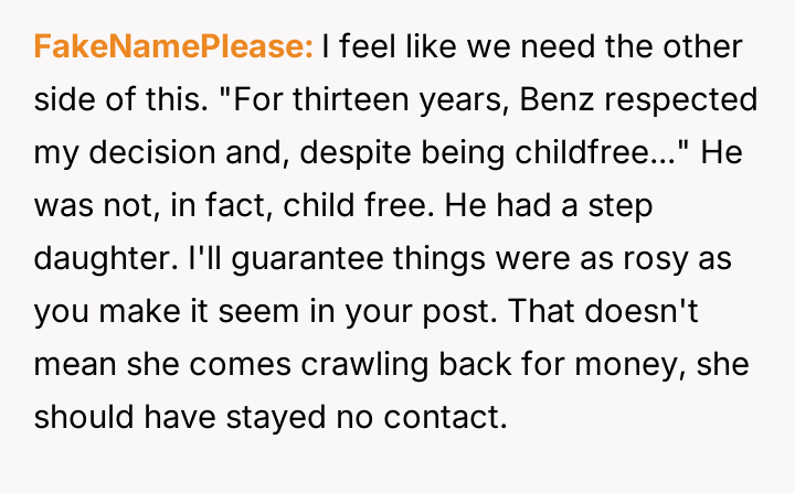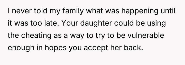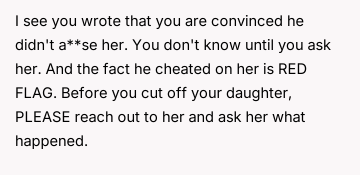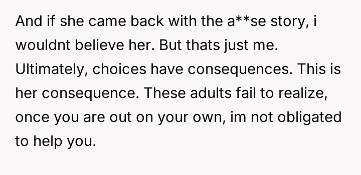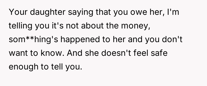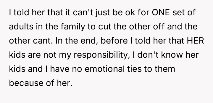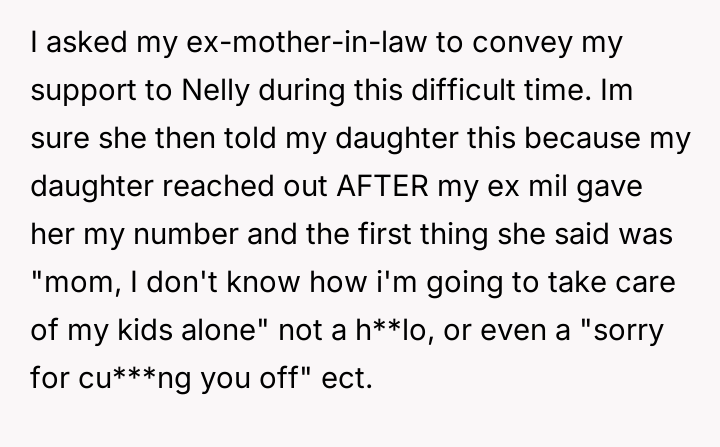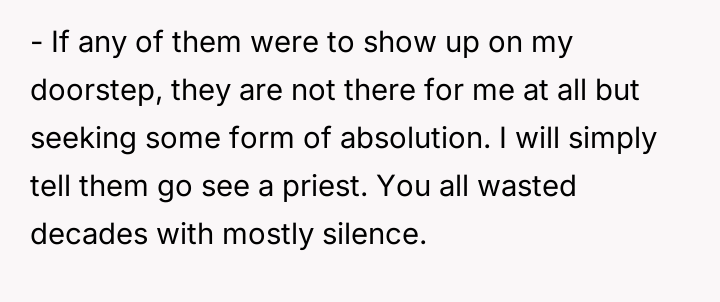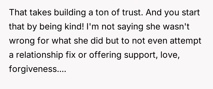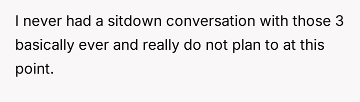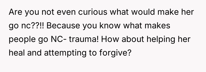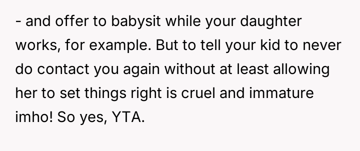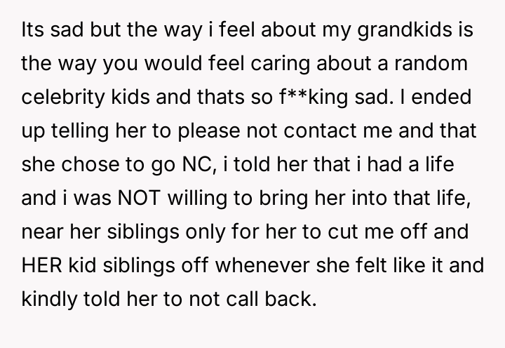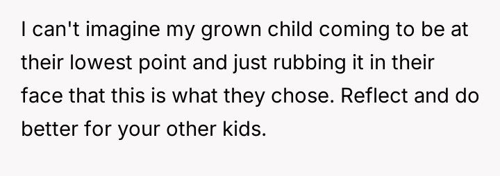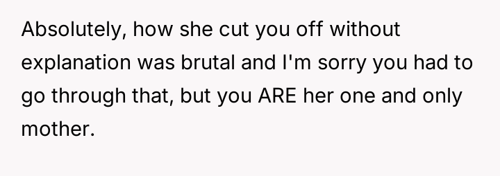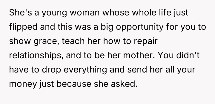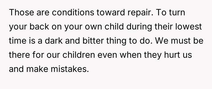 Given the daughter's unilateral decision to sever ties and her subsequent transactional demand for assistance regarding children she kept secret, the central question remains: Does a biological relationship mandate immediate forgiveness and financial support, even when one party has demonstrated a consistent pattern of dismissive and exclusionary behavior toward the other?