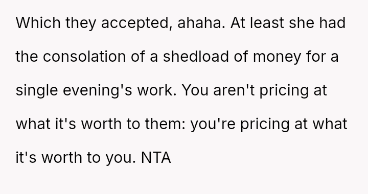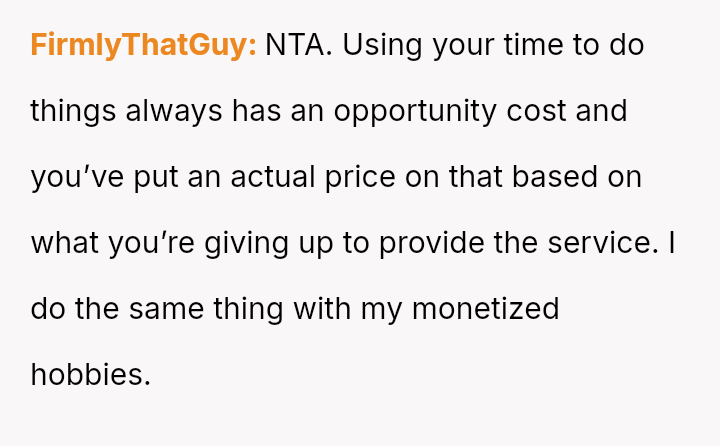 Is the OP justified in setting professional-level rates for a hobby service to protect their primary career and personal time, or do the expectations of friends and family for casual favors override the OP's need to es**blish clear, monetarily fair boundaries?