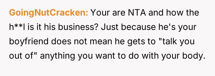 Is the boyfriend's reaction a necessary boundary setting, or an overreach into the OP's personal autonomy?