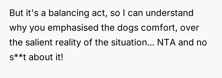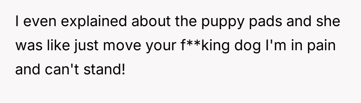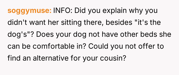 Or, should the OP have prioritized the immediate social harmony and the cousin's stated physical difficulty by relocating the dog to an alternative spot?