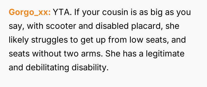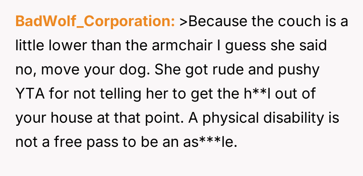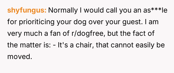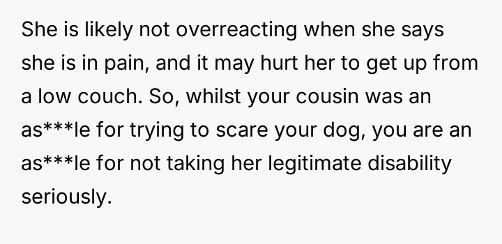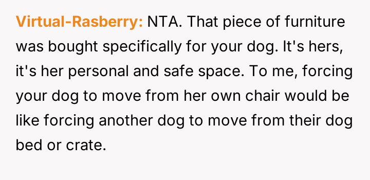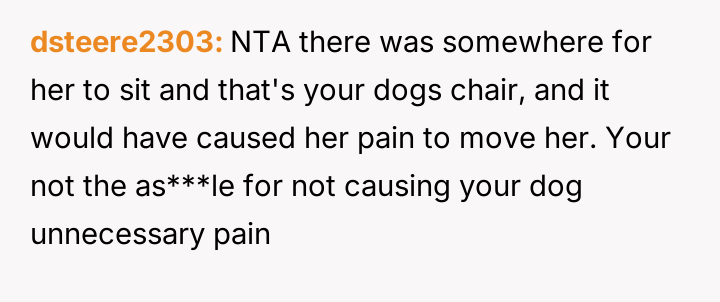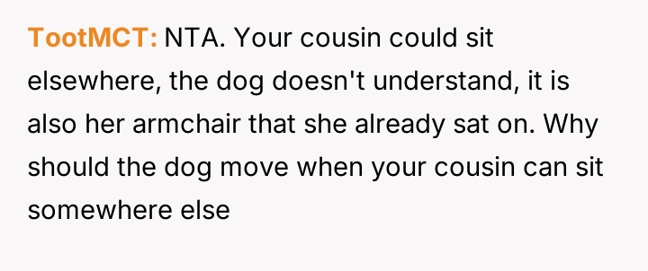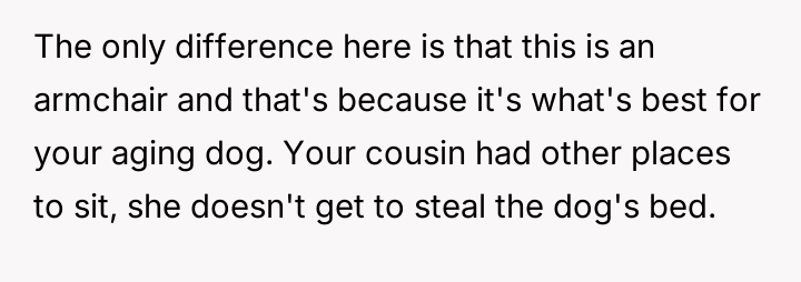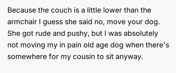 AITA for refusing to move my dog from her armchair so my disabled cousin could sit down?