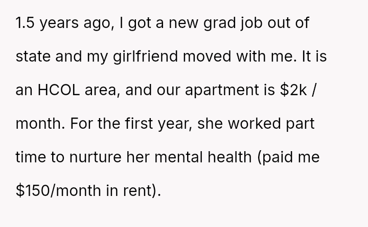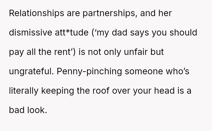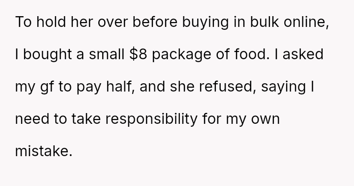 Is the OP overreacting by demanding a small contribution for an immediate shared necessity, or is the girlfriend being unreasonable by invoking her unemployment and external advice to completely dismiss a minor cost-sharing request when her partner is shouldering the ma*sive financial burden of their living situation?