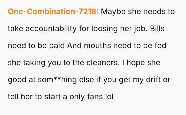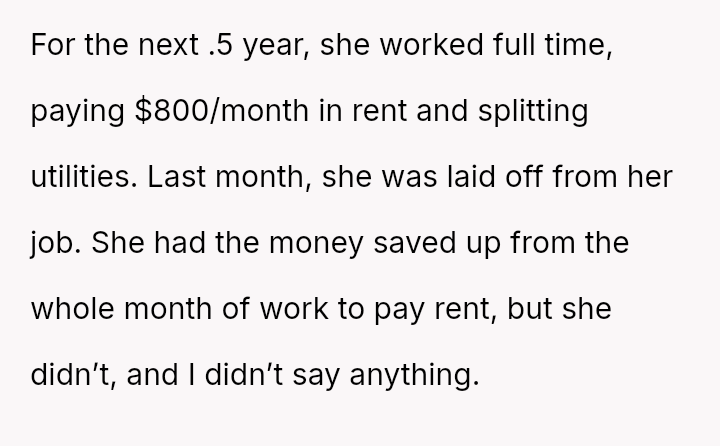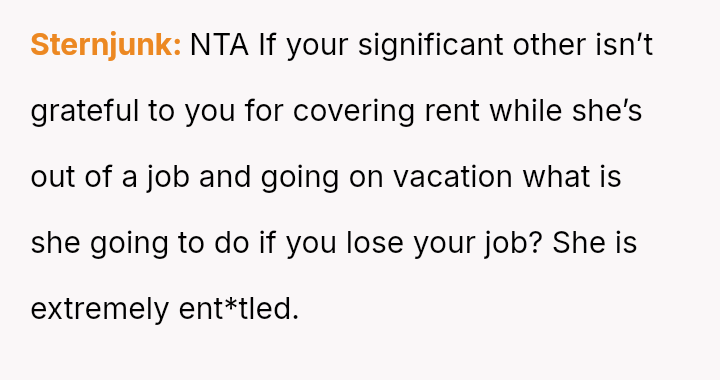 The central conflict revolves around differing expectations regarding financial contribution during this period of unemployment, contrasting the OP's expectation of reciprocal grat*tude and shared responsibility with the girlfriend's insistence on her current limited financial status and external advice suggesting the OP should cover everything.