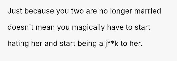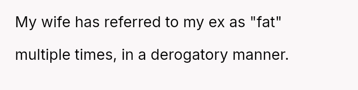 The conflict arose because the OP's current wife has repeatedly called the ex-wife "fat" in a negative way.