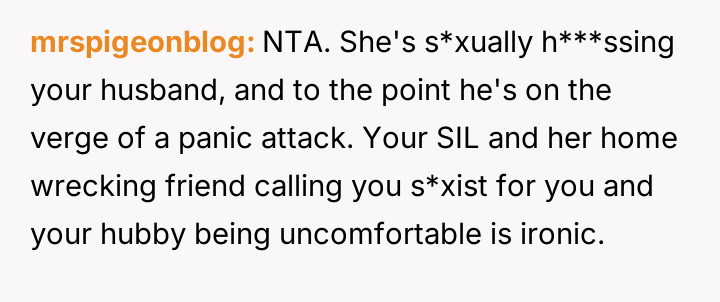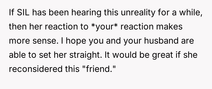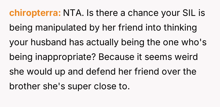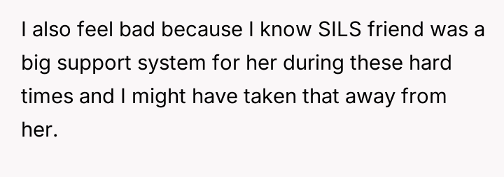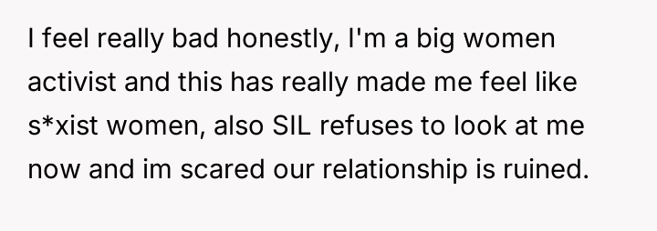 While upholding marital boundaries made them and their husband feel safe, their actions resulted in severe distress for their sister-in-law (SIL) and a potential rupture in their relationship with her.
