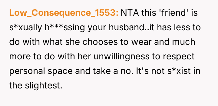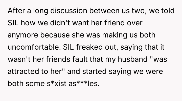 AITA for telling my sister in law her friend is no longer allowed over because she wears revealing clothes around my husband?
