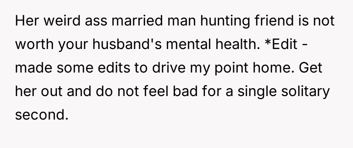 Given the clear boundary v***ations by the guest and the resulting marital distress, was setting a firm boundary by banning the friend justified, even if it meant damaging the relationship with the SIL?