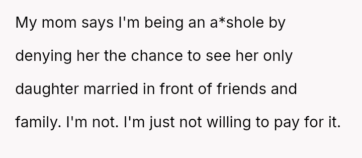 Is the OP justified in refusing to fund her parents' desire for a large wedding, even if it means causing significant emotional distress to her mother who feels denied witnessing her only daughter's dream ceremony?