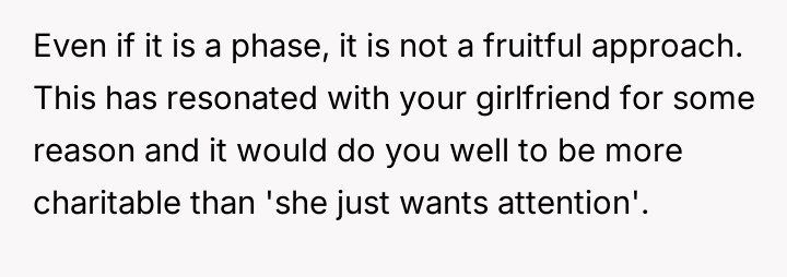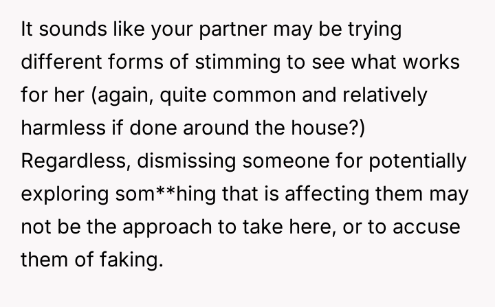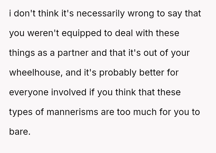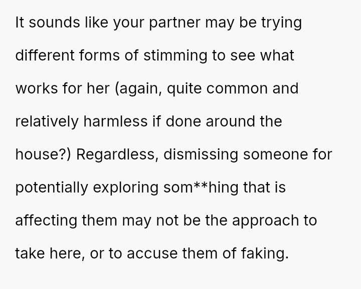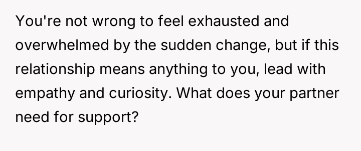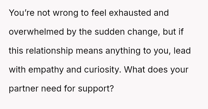 How should a partner respond when they suspect a significant behavioral change is being mimicked due to external influences rather than a confirmed medical condition?